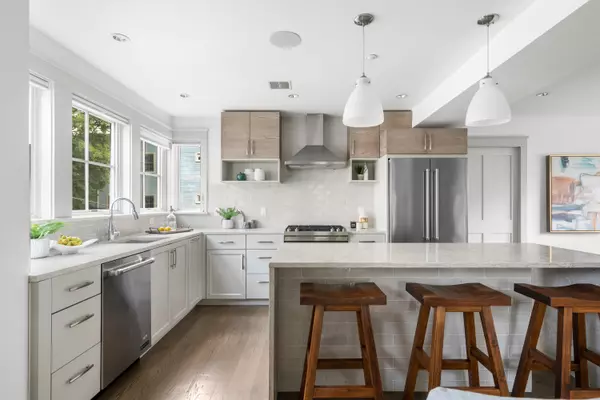 Kitchen Flooring - Hardwood, Kitchen Island, Open Floorplan, Recessed Lighting, Stainless Steel Appliances, Gas Stove, Lighting - Pendant, Pocket Door